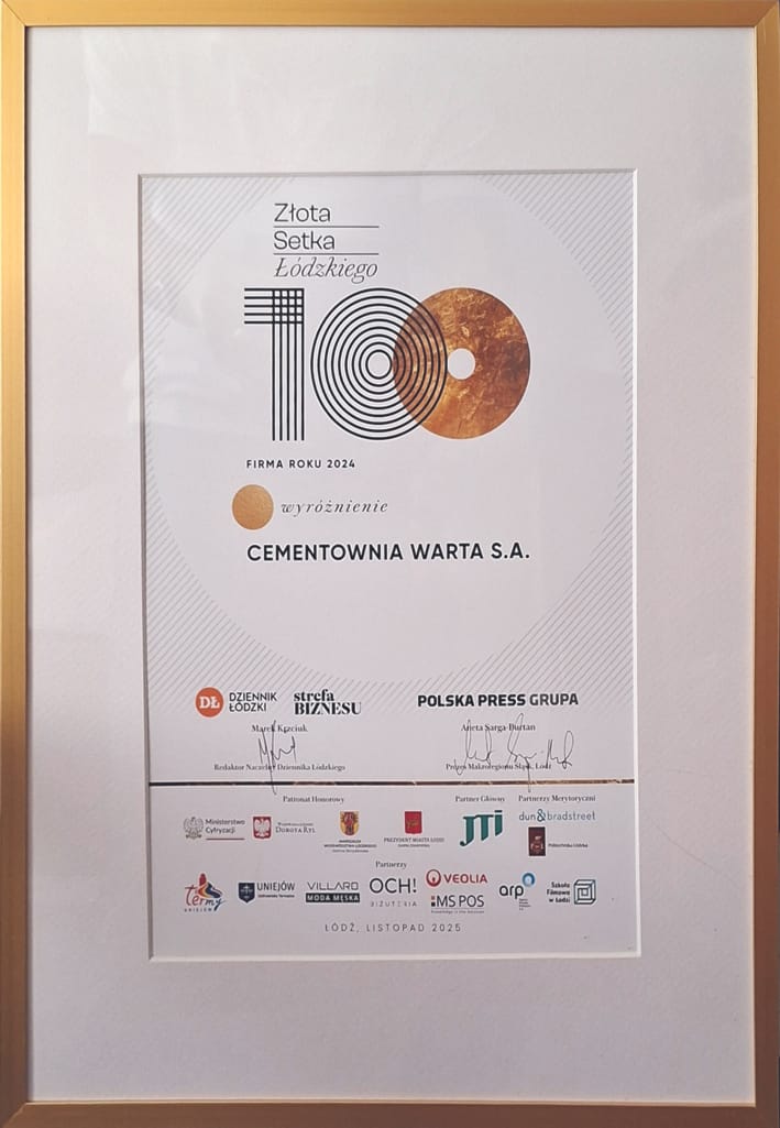 Tym bardziej jesteśmy dumni, że Cementownia Warta S.A. zajęła trzecie miejsce w ogólnym zestawieniu w kategorii Firmy Roku 2024. To dla nas sygnał, że kierunek, który obraliśmy – odpowiedzialny rozwój, innowacje i realny wpływ – jest właściwy. Dziękujemy za zaufanie i motywację do dalszego działania!